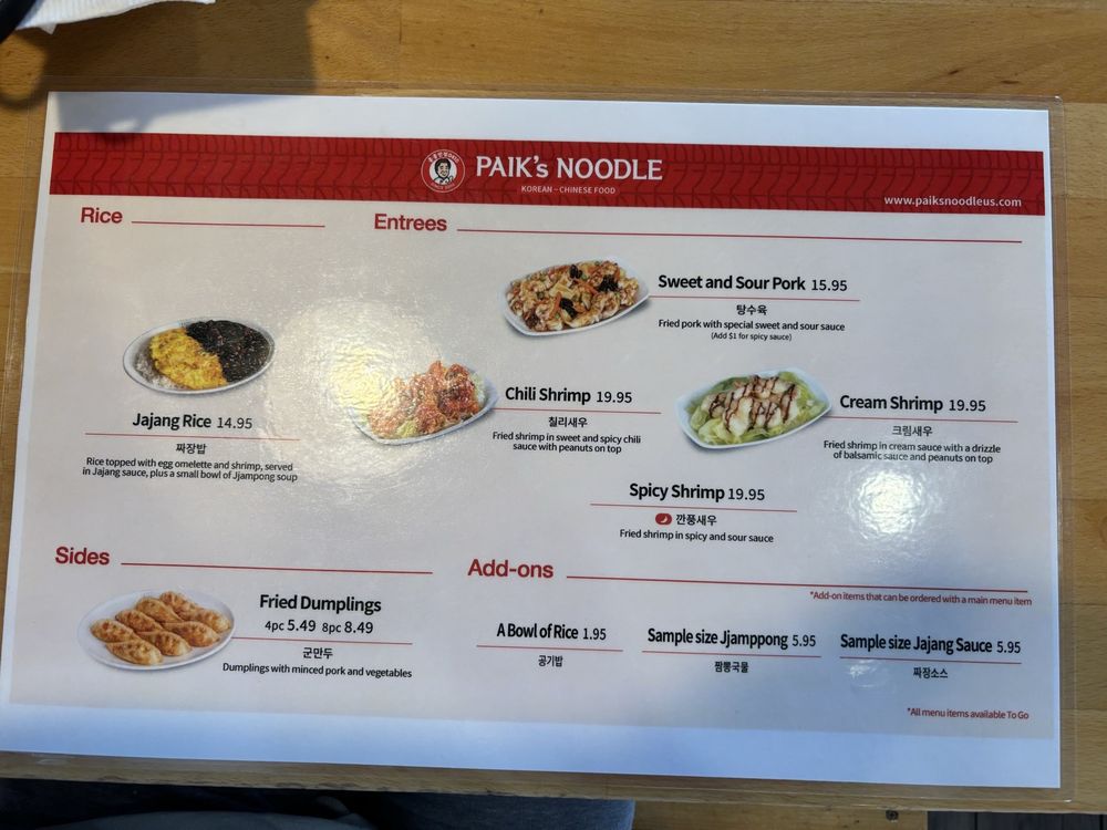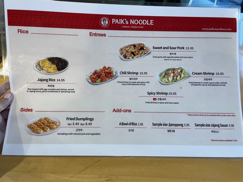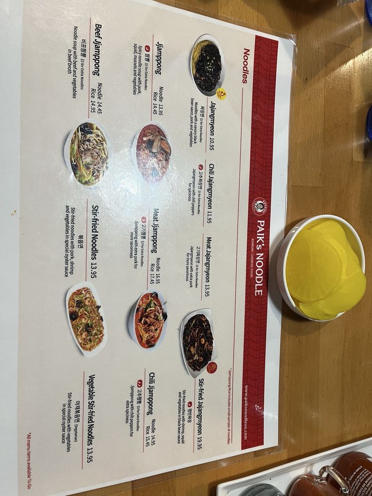 Introducing Paik’s Noodle, a Korean restaurant located in Santa Clara, CA, offering a variety of delicious dishes. The menu includes must-try items like Jjamppong, Spicy Seafood Noodle Soup, Jajangmyeon, Blackbean Sauce Noodle, and Sweet and Sour Pork. Customers rave about the exceptional service and flavorful food, with favorites being the Chili Jajangmyeon, Beef Jjamppong, and Fried Pork. The portions are generous, perfect for sharing with friends or family. The ambience can get busy, but the efficient service makes the experience enjoyable. Paik’s Noodle stands out for its quality dishes made to perfection and attentive service, making it a top choice for Korean cuisine enthusiasts. Don't miss out on this gem for a satisfying dining experience.